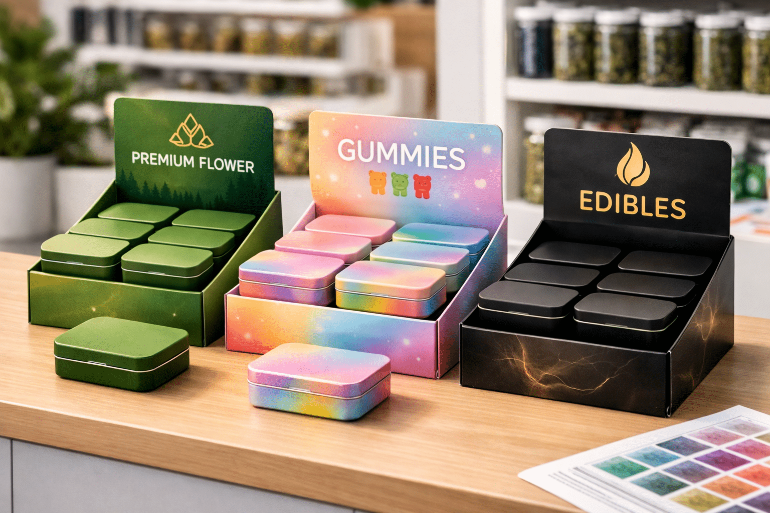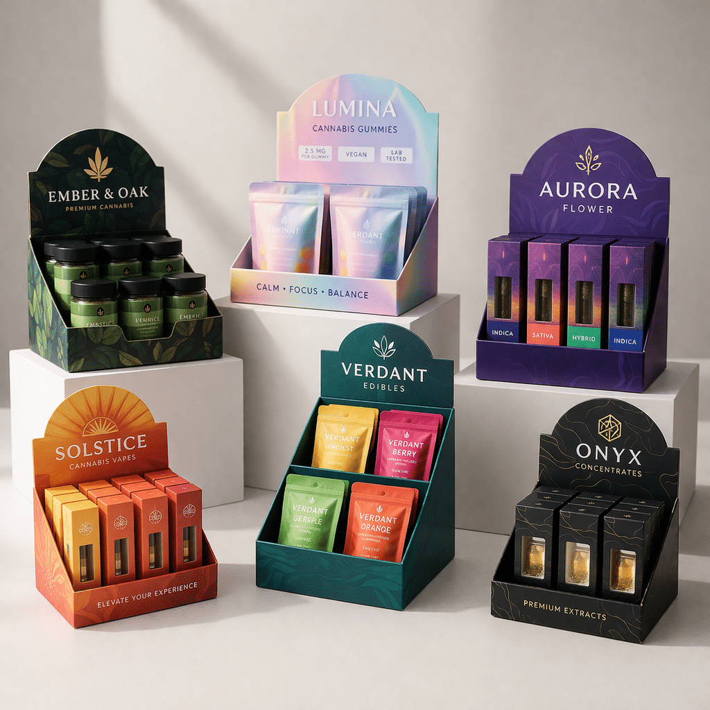 Claim premium checkout real estate. RXDco counter and point of sale displays are custom branded cartons engineered for dispensary counters and bud bars, sized to fit RXDco primary packaging with full color graphics and flexible structures for any campaign.